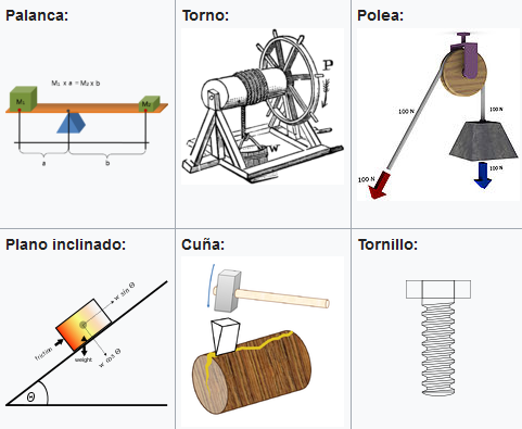 Revisa los conceptos de máquinas simples y realiza un dibujo de cada uno, explicando cómo es que se reduce la fuerza que requiere ser aplicada, al utilizar cada una de ellas.